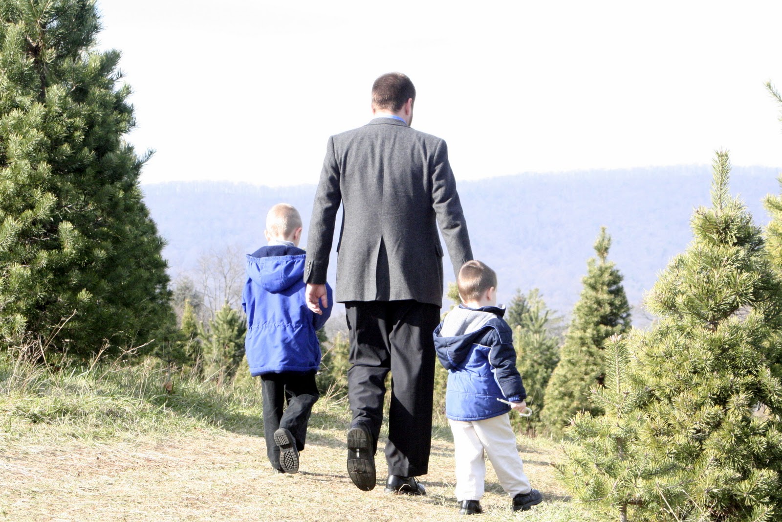 At that point, I didn't even know what part of the field Jeff was in; but after a while, I saw him coming, his little shadow Tobin tagging along behind. We always get two trees--one for our house and one for Jeff's barbershop--and when I saw Jeff here, he had already cut one tree down but was indecisive about which other one to get. One of the secrets to a great marriage, I've discovered, is to, by all means, NOT be picky about which Christmas tree to get. There's more to having a great marriage than just this, but it's not a bad place to start. ;-) So when Jeff said, "I don't know which one to get," I quickly pointed to one and said, "How about this one?" "That one?" he asked, "Are you sure?" "Well, OK, maybe not that one," I replied, then nearly as quickly pointed to another one close by. "But this one looks fine to me." :)